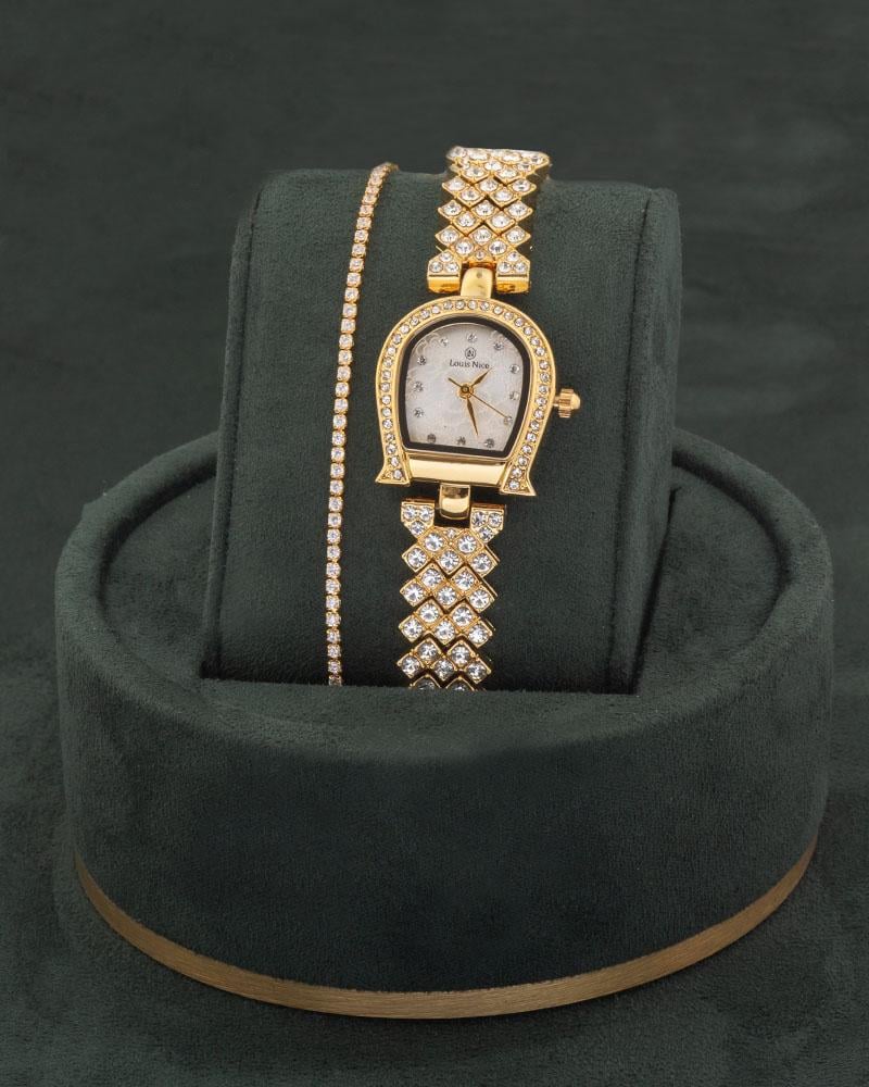 حين يجتمع الإبداع مع الأناقة، تولد قطعة تُكمل إطلالتك بكل سحر، هذه التشكيلة الفريدة من إسوارة التنس الفاخرة والساعة الذهبية المرصعة بحبيبات الزركون اللامعة تمنحك حضورًا يلفت الأنظار ويُعبّر عن ذوقك الرفيع، سواء كنتِ تبحثين عن قطعة تُزيّن معصمك بكل فخامة أو هدية راقية تعبّر عن التقدير، فإن هذه التشكيلة هي الخيار المثالي.