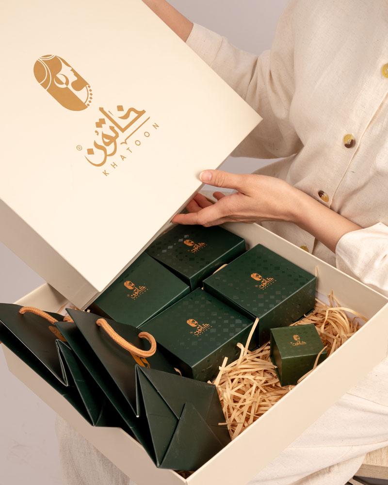 • التغليف: بوكس فخم يحمل شعار خاتون مناسب للإهداء مباشرة.