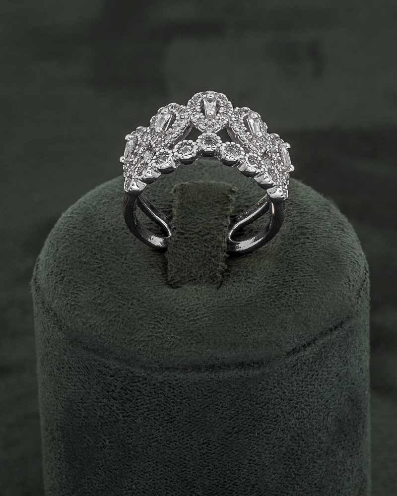 خاتم توينز فضي تصميم ملكي بلمعة الألماس