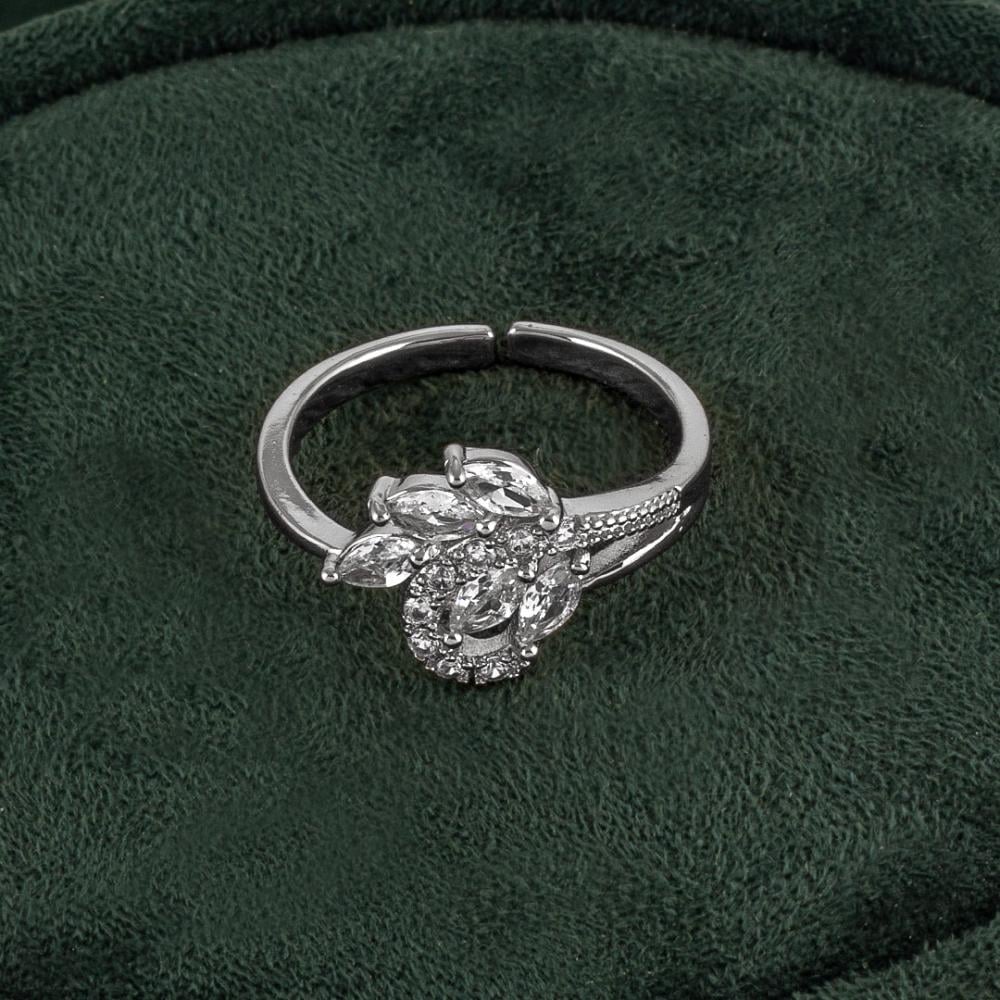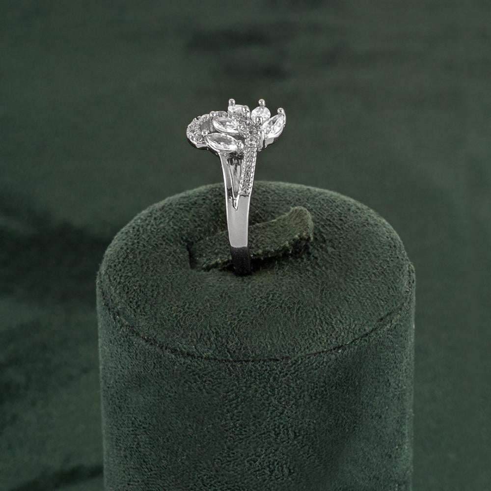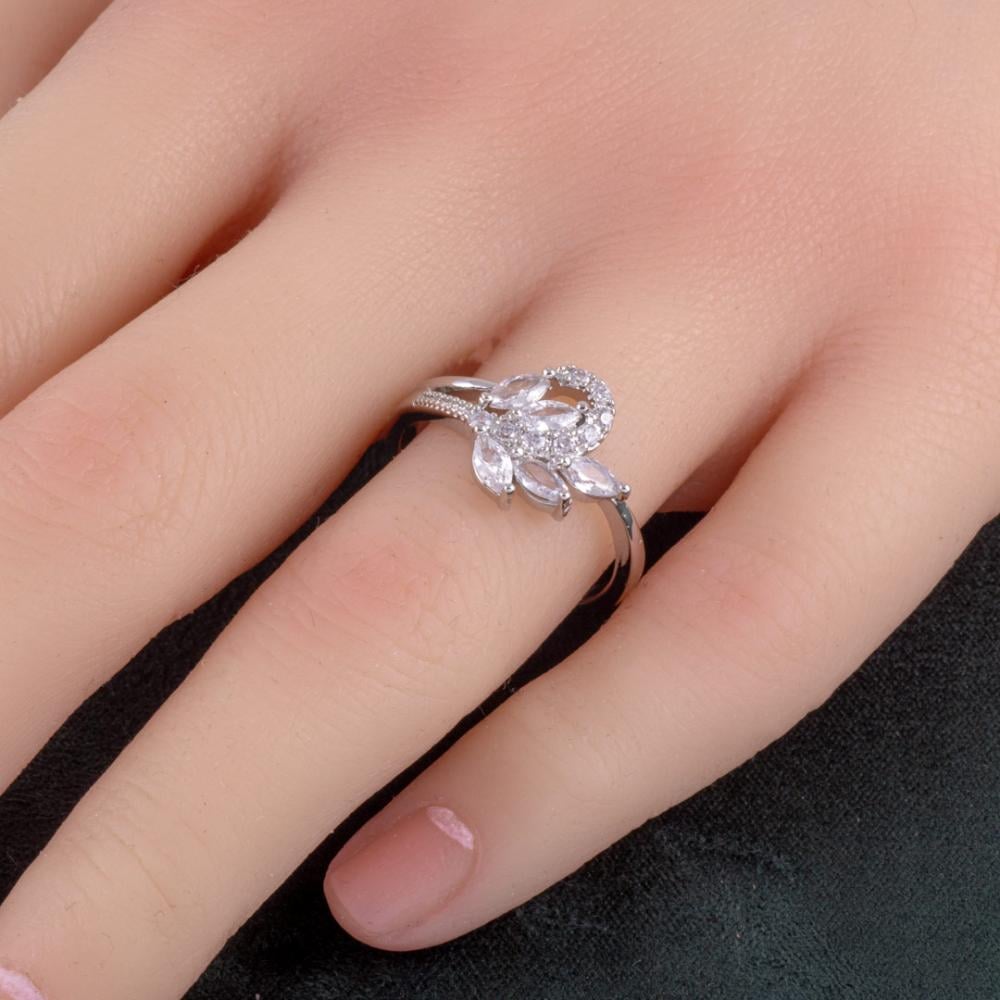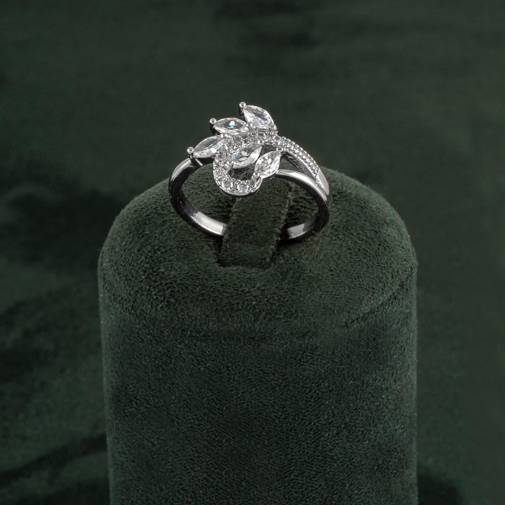 خاتم نسائي تصميم غصن الشجر فضي مزين بالزركون
