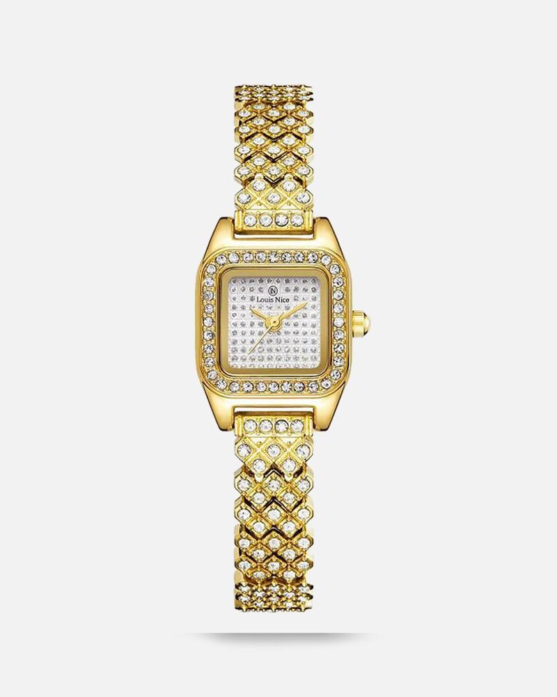 الساعة الذهبية التي تُكمل فستانك الأسود، وتعكس جمالك في كل حركة. قطعة لا تكتمل السهرة بدونها.