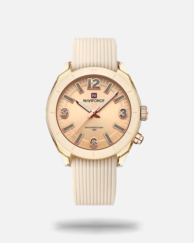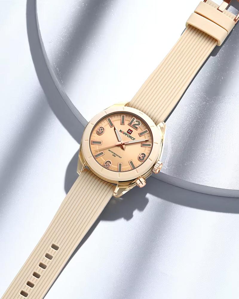 اكتشفي سحر الأناقة البسيطة مع ساعة يد نسائية دائرية كاجوال بلون بيج، التي تجمع بين الراحة والتصميم العصري لتناسب كل إطلالاتك اليومية. تأتي هذه الساعة بلون بيج ناعم يُضفي لمسة هادئة وفاخرة إلى معصمك، مما يجعلها خيارًا مثاليًا لكل امرأة تبحث عن الأناقة البسيطة والعملية.