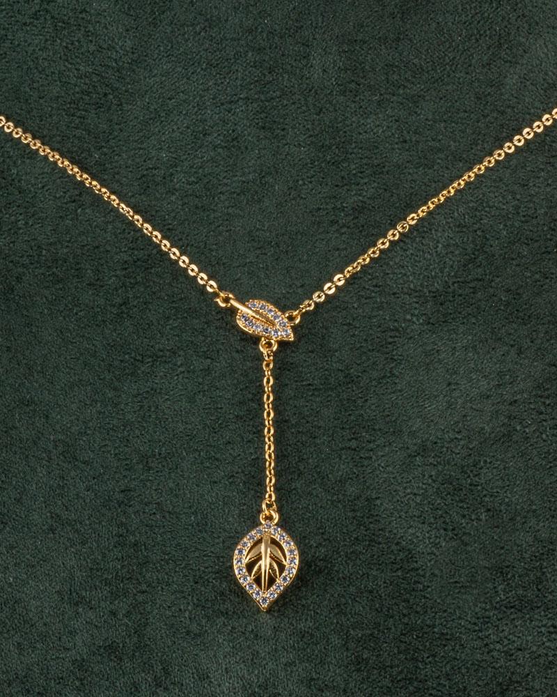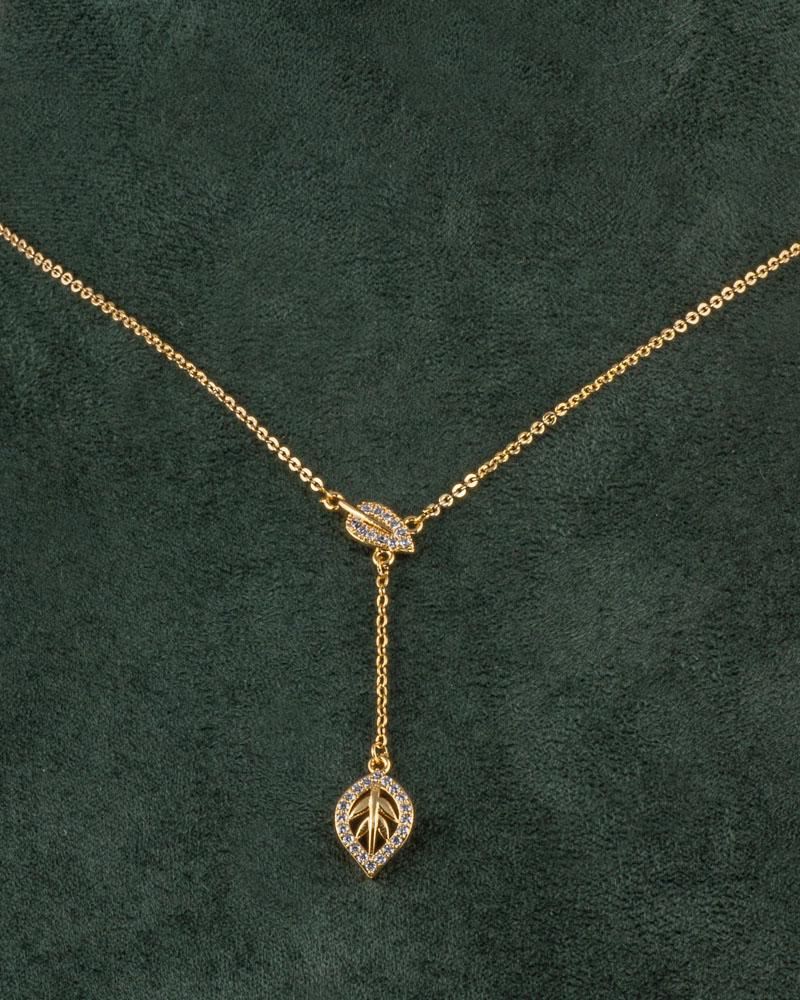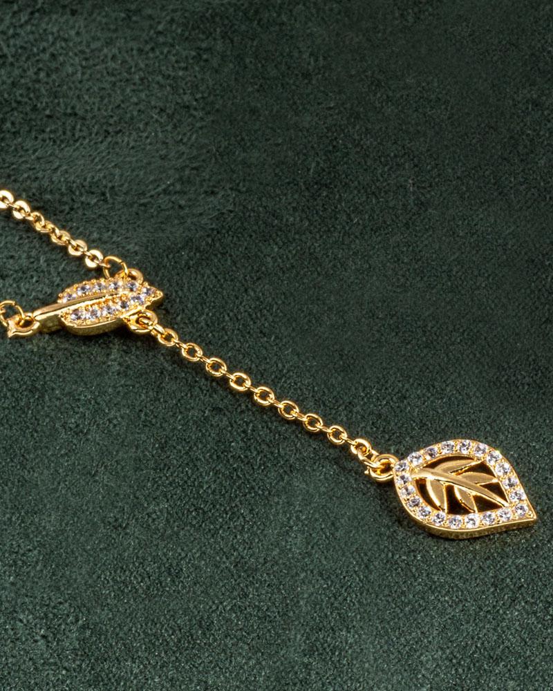 سلسال نسائي ذهبي بتصميم ورقة الشجر ومزين بالزركون اللامع