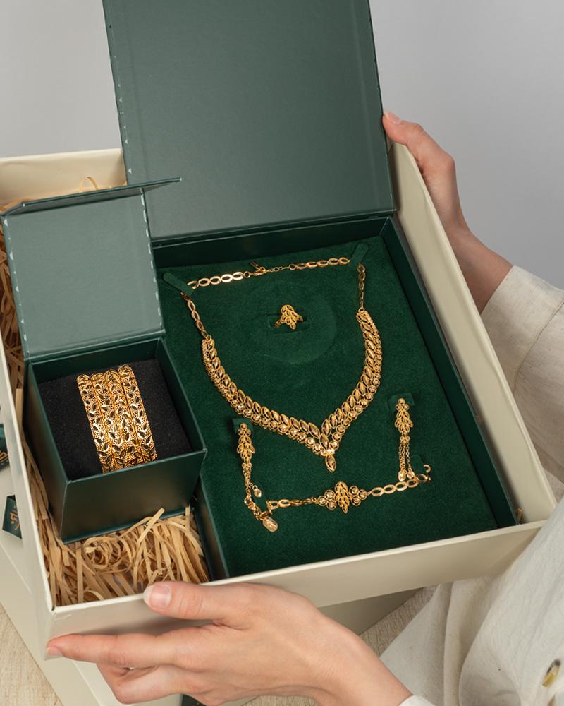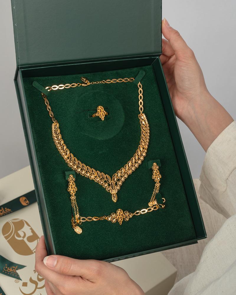 قدّمنا لكِ تشكيلة "فخامة الذهب"، اللي جمعت لكِ بين أناقة الطقم الذهبي الجذاب وفخامة بناجر خاتون® اللي تبرق برق! هذه المجموعة هي القطعة الناقصة اللي بتكمّل إطلالتك في كل مناسبة، سواء كانت خطوبة، حفلة، أو حتى خروجة عادية تبغين فيها لمسة فخامة.