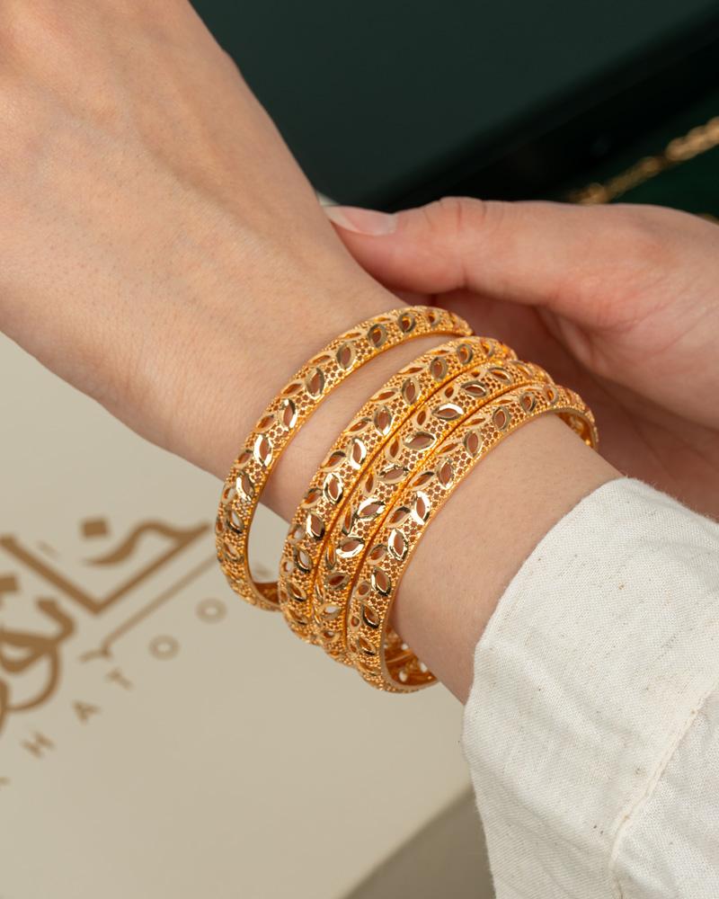 6. بناجر فخمة بتفاصيل ساحرة: بناجر خاتون 4 حبات تكمّل بعض، لمسة فنية بتخلي معصمك محط الأنظار وتبرز ذوقك الراقي.