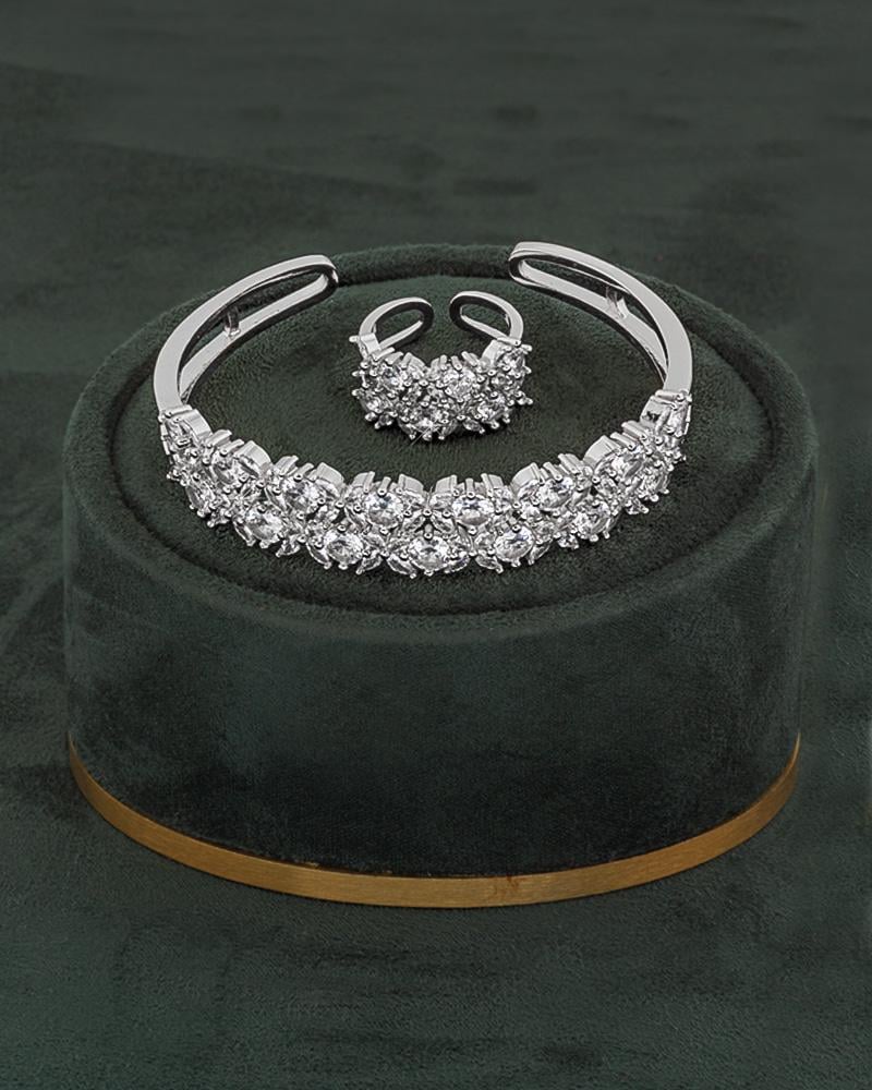 - الحجر: مرصّع بأحجار زركون بلمعة الألماس.