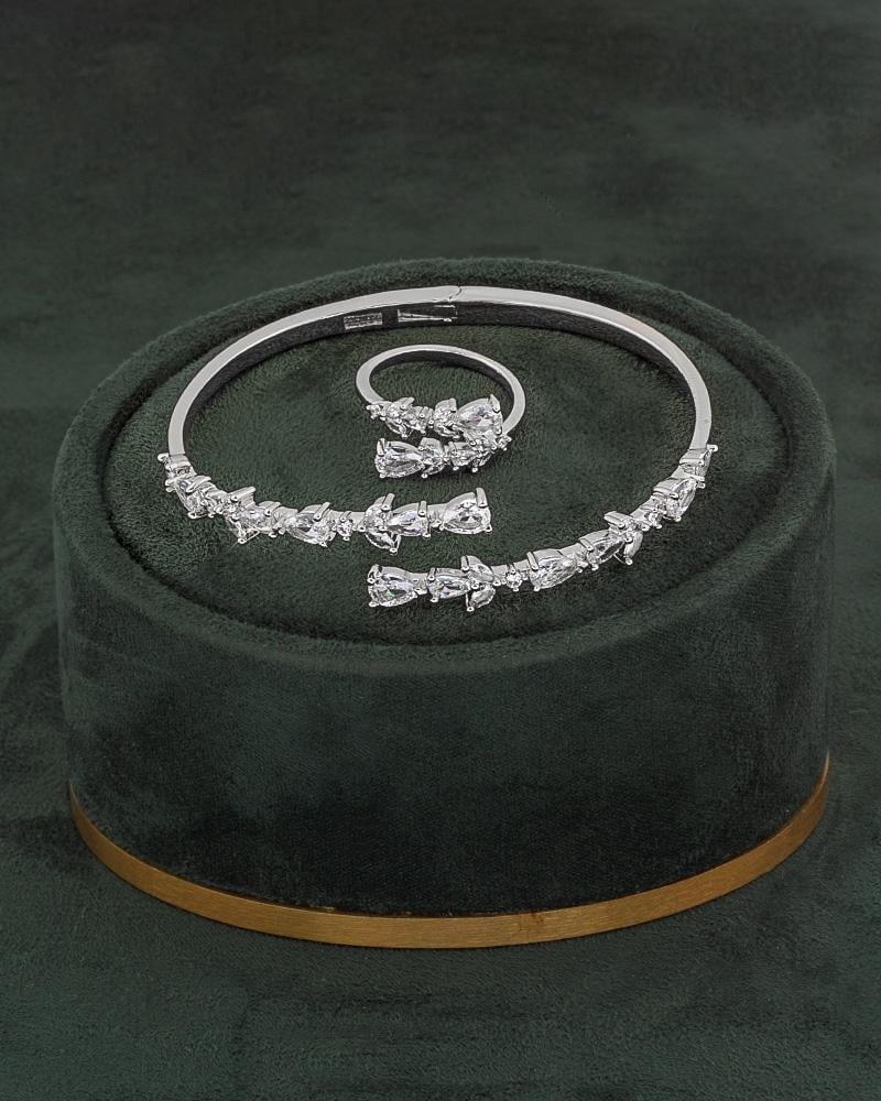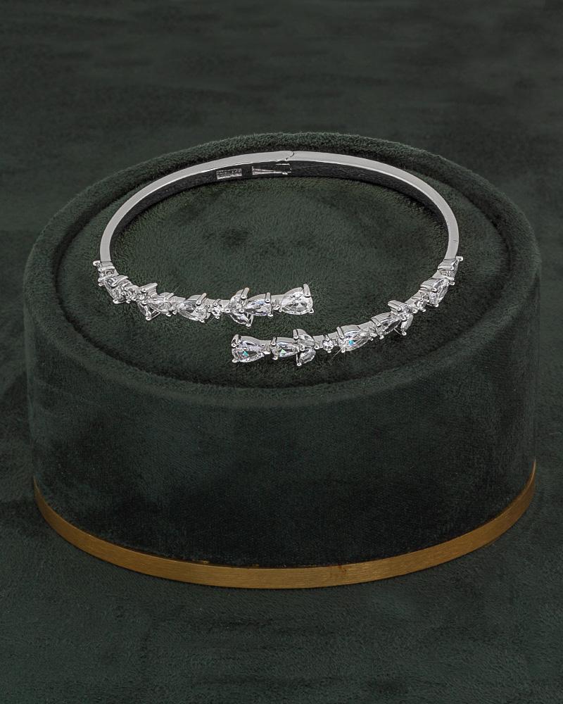 - الحجر: مرصّع بأحجار زركون بلمعة الألماس.