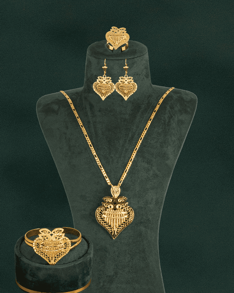 طقم الحب المطلي بالذهب عيار 18 من خاتون®