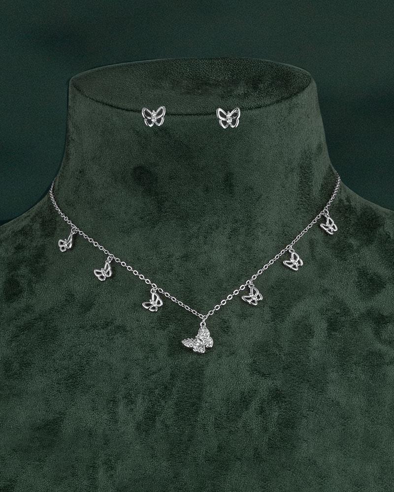 شوكر فضي وحلق بتصميم فراشة الحب مزين بالزركون