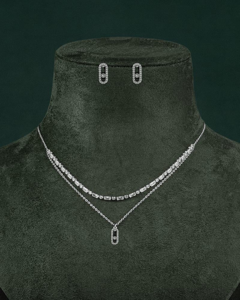 طقم سلسال مع حلق شوكر بالزركون فضي لمسة فاخرة للحفلات لأنكِ تستحقين كل ما هو راقٍ ومميز متوفر الآن في السعودية