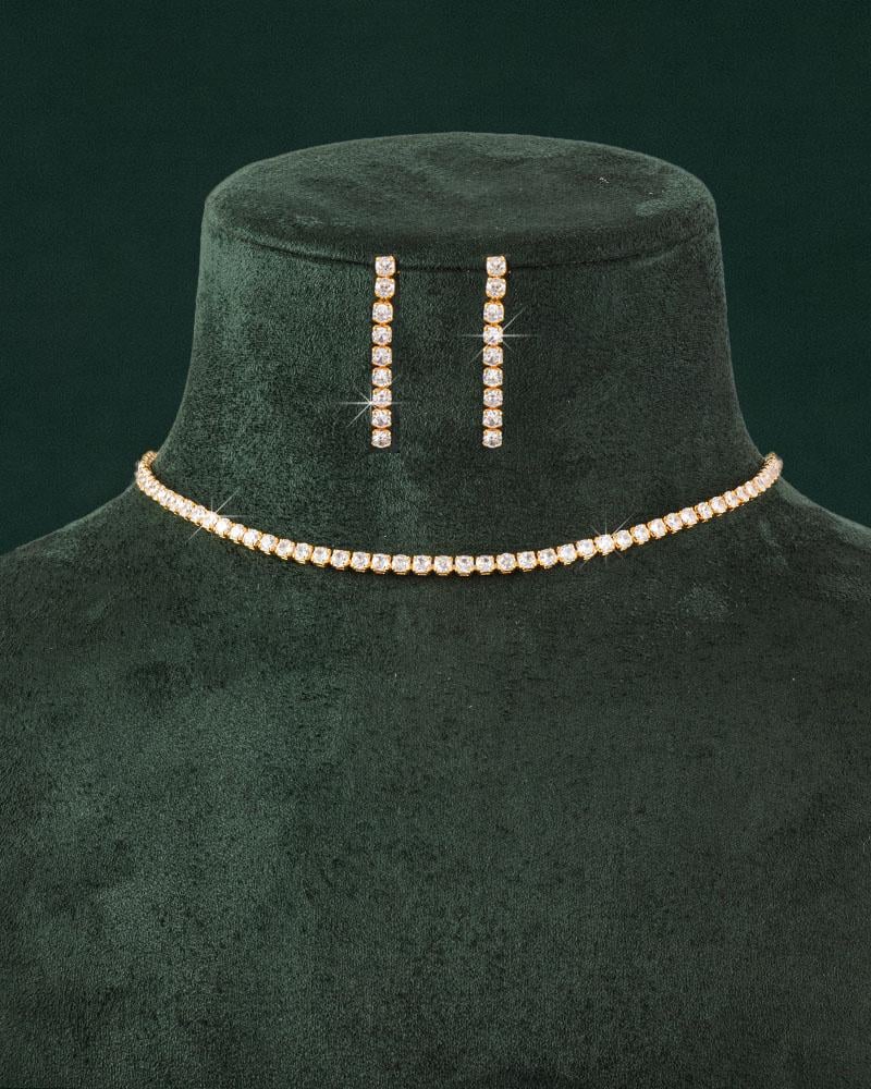 شوكر ذهبي وحلق مزين بالزركون مع تغليف فاخر، ضمان جودة سنتين، دفع بالتقسيط، وتوصيل إلى كافة أنحاء المملكة.