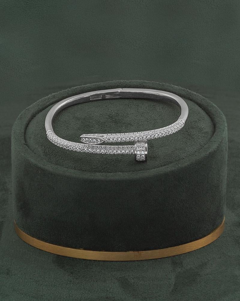 - الحجر: مرصّع بأحجار زركون بلمعة الألماس.