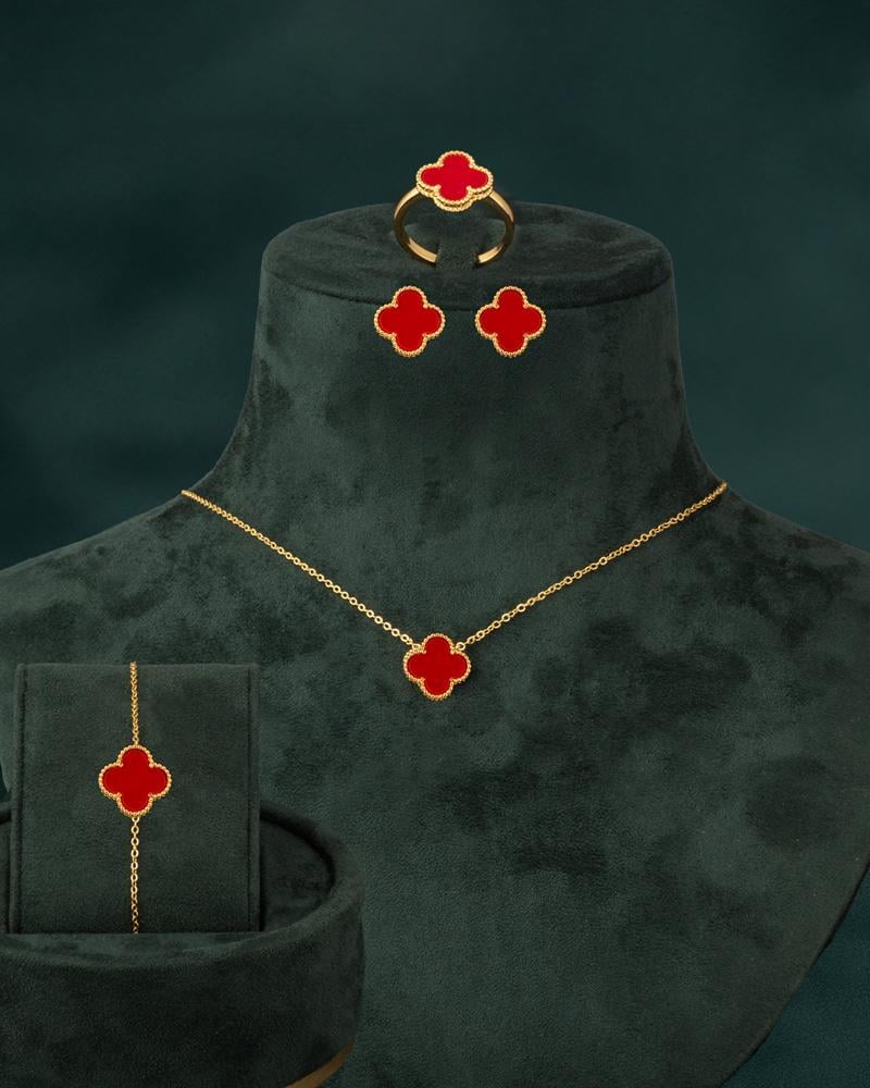 - صُنع هذا الطقم على شكل الورود المستوحاة من قلب الطبيعة الخلابة ليعكس ارتباطك الوثيق بجذورك الجمالية.