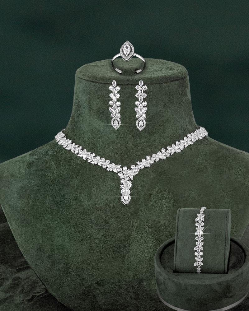 طقم فضي مرصع بالزركون، ضمان جودة سنتين، وتغليف أنيق, تمتع بتوصيل سريع داخل المملكة العربية السعودية، ودفع بالتقسيط لتجربة تسوق مريحة.،