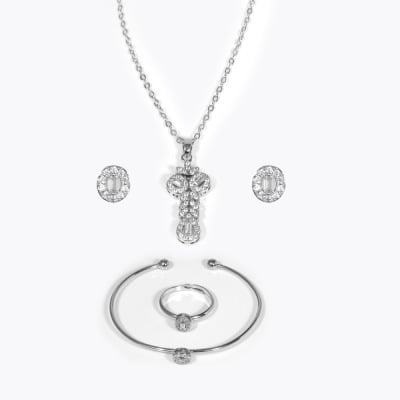 طقم مجوهرات بتصميم عالمي وردة بيضاء صغيرة