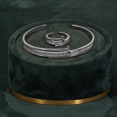 طقم اسوارة وخاتم بلمعة الألماس مزين بالزركون من خاتون