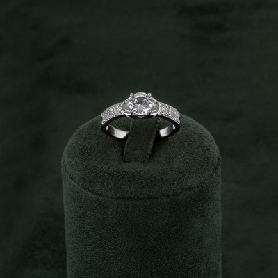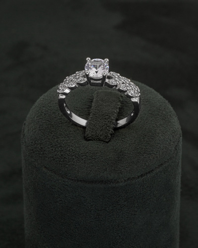 خاتم نسائي مزين بالماسة كبيرة فضي مزين بالزركون