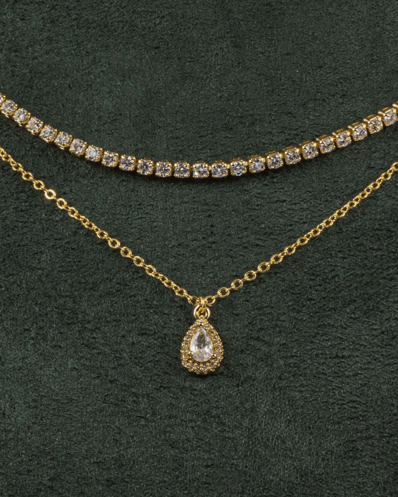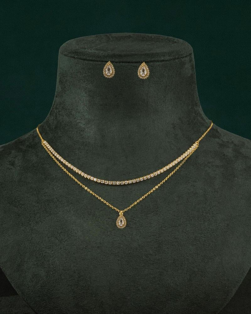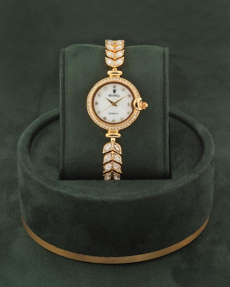 طقم شوكر مع ساعة تصميم ذهبي مرصع بالزركون