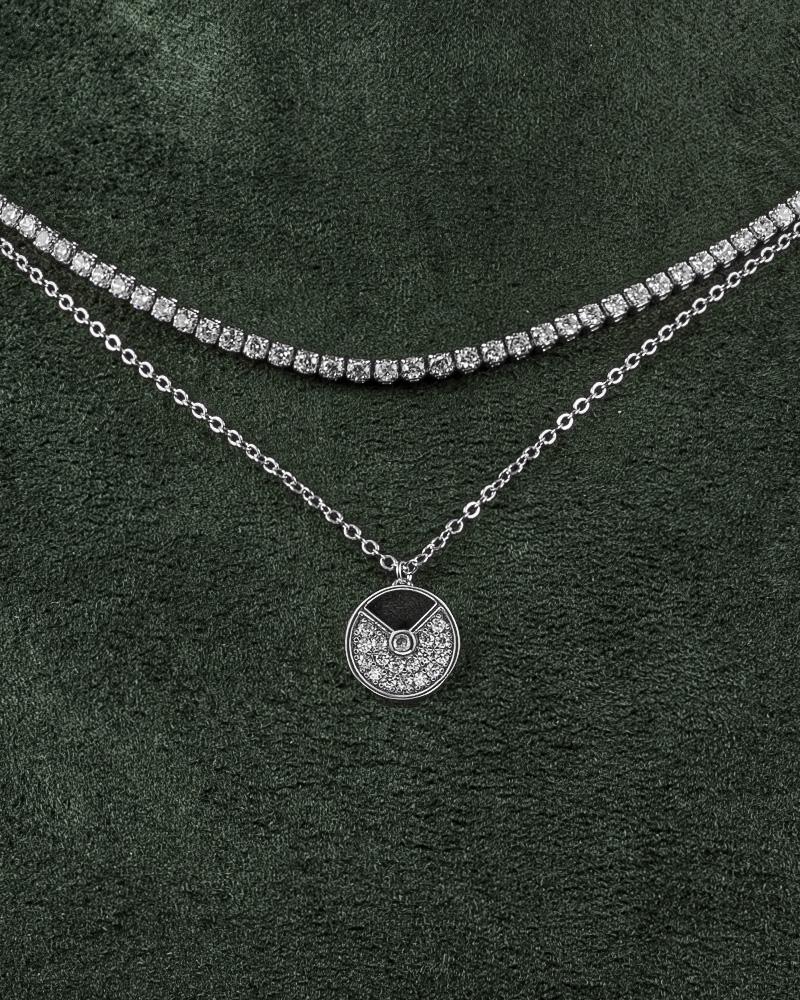طقم سلسال وحلق بتصميم فضي مرصع بالزركون – متوفر في السعودية