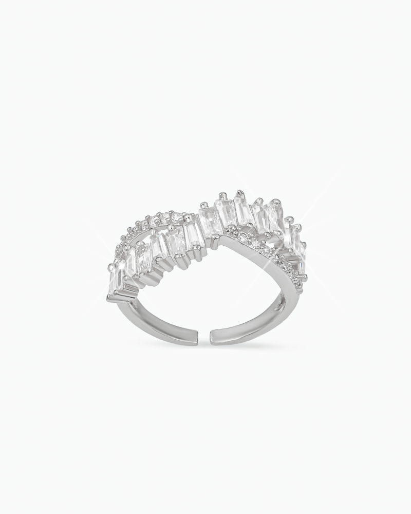 خاتم نسائي لولبي مرصع بفصوص الزركون اللامعة تصميم ألماس