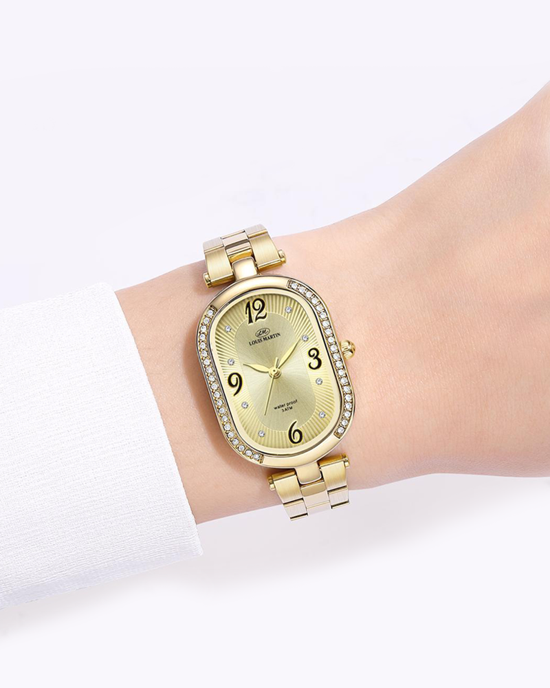 تألقي بأناقة لا تقاوم مع ساعتنا الأنالوج النسائية باللون الذهبي والشكل المستطيل. هذه الساعة تجمع بين البساطة والجمال مع تصميمها الرسمي المحدث الذي يناسب جميع الأذواق. الإطار الذهبي يعزز من جمال الساعة، مما يجعلها مثالية للارتداء اليومي أو للمناسبات الخاصة. سوارها المريح يضمن الراحة على مدار الساعة.