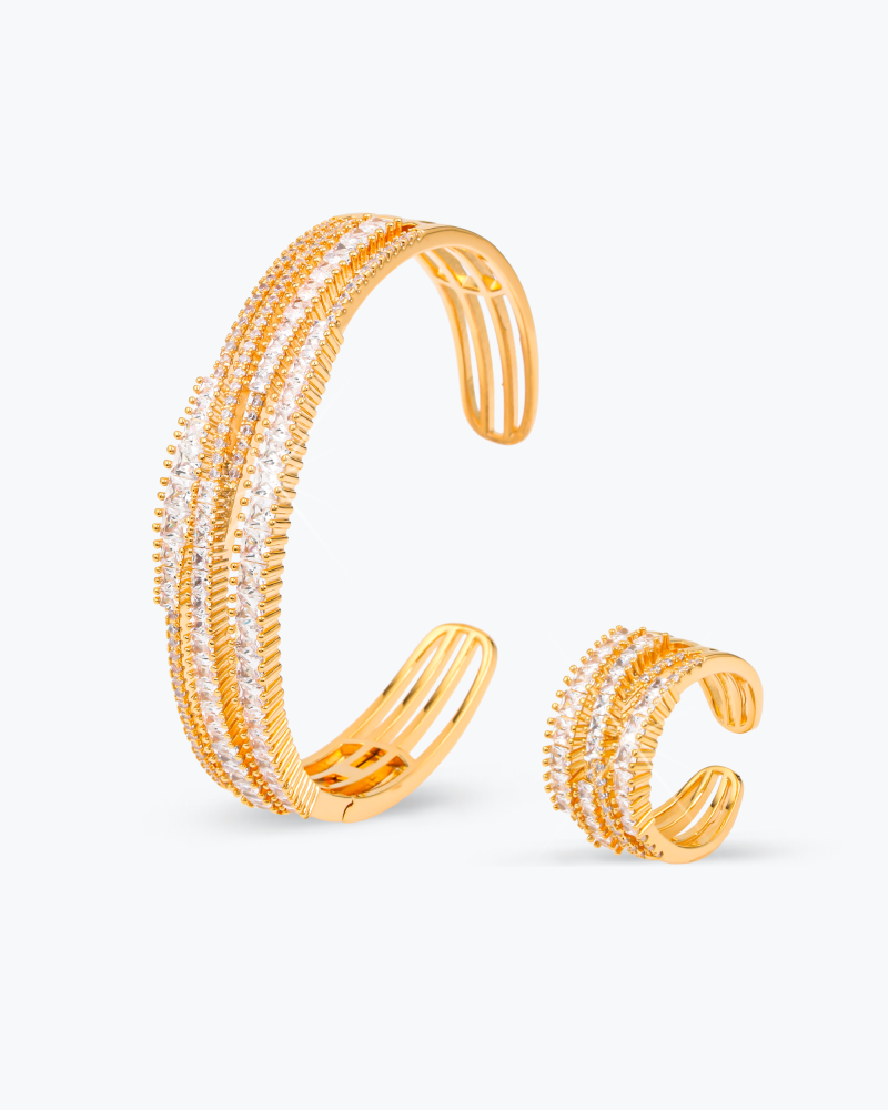 - طقم الإسوارة والخاتم المزدوج من خاتون® يوفر لهن لمسة ذهبية أنيقة، مع راحة في اللبس وجودة تحترم بشرتهن.