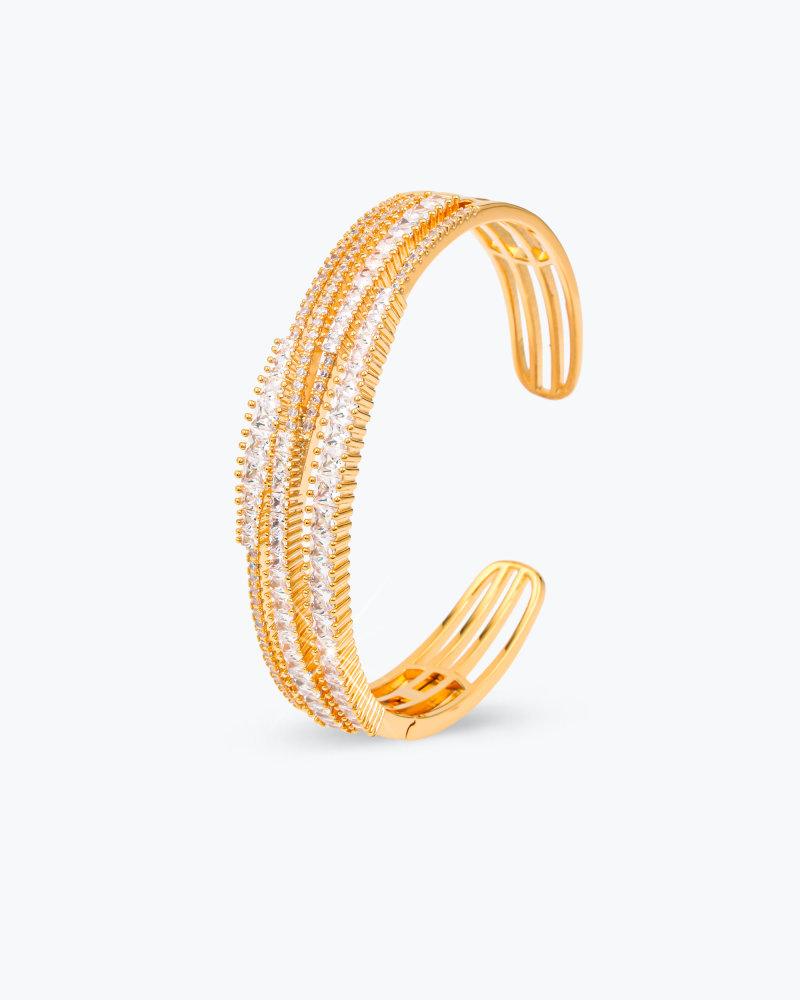 اجعلي يوم زفافكِ أكثر سحراً وتألقاً مع طقم الإسوارة والخاتم الذهبي الفاخر من ماركة خاتون®. هذا الطقم المذهل، المستوحى من سحر الألماس والمزين بأحجار الزركون البراقة بلمسة ذهبية ملكية، سيضفي على إطلالتكِ لمسة من الفخامة والرقي التي تليق بملكة متوجة في يومها الخاص. تألقي ببريق الذهب الذي يليق بكِ في بداية حياتكِ الجديدة!