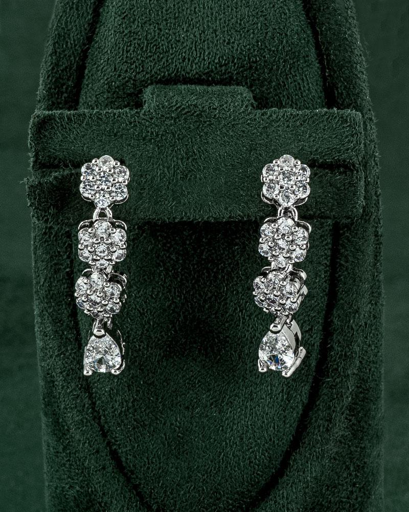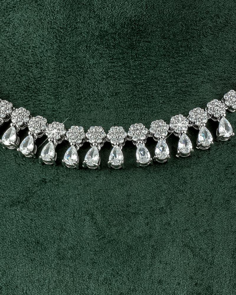 1- طقم فضي فاخر مرصع بالزركون بلمعة الألماس :