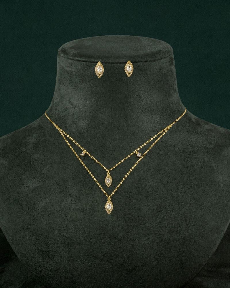 - طقم سلسال وحلق مرصع بالزركون بفن وحرفية عالية تليق بكِ وبفخامتك.