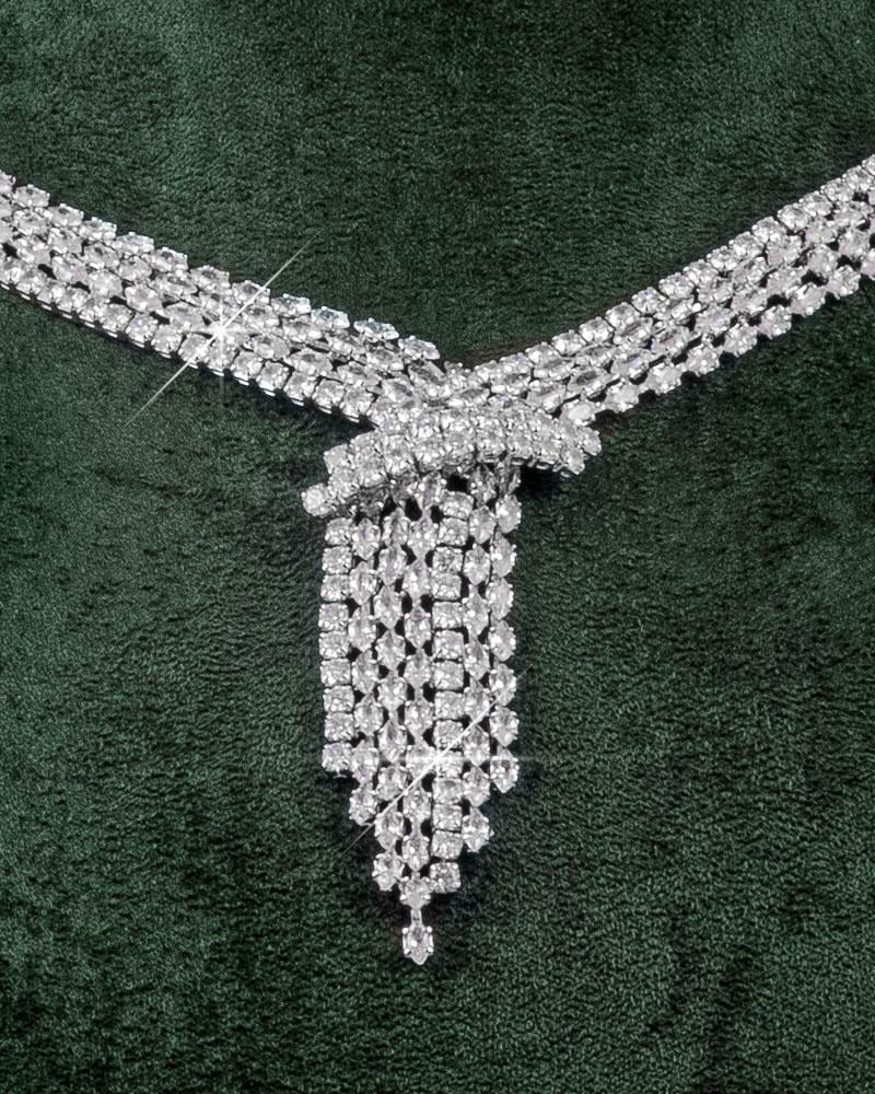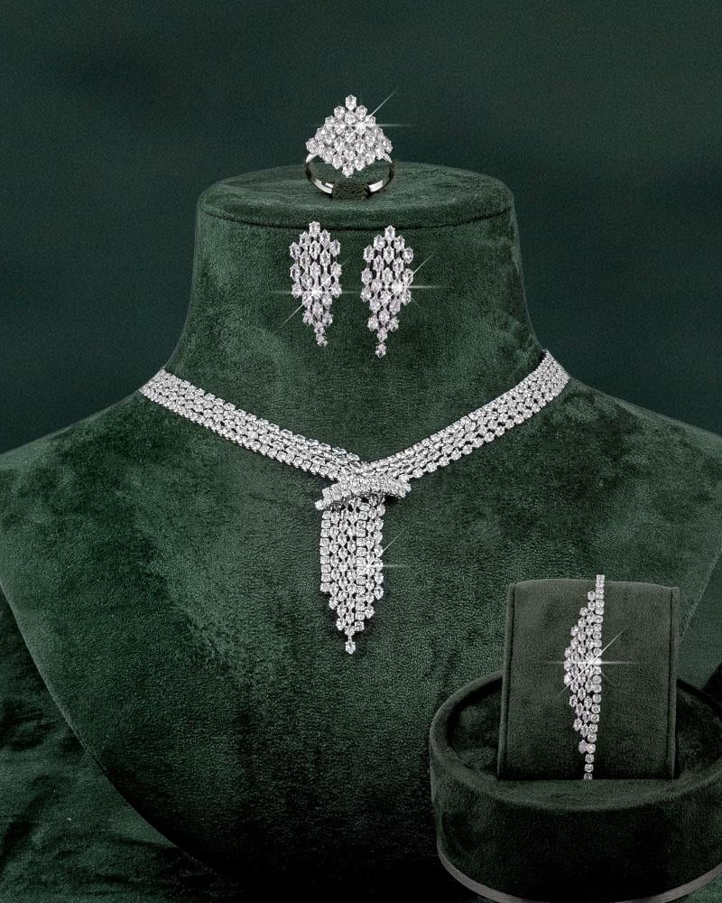 طقم مجوهرات مرصع بالزركون على شكل الأحجار الكريمة بلمعة الألماس للمناسبات