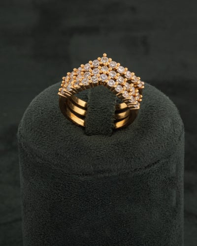 خاتم ثلاثي ذهبي مزين بالزركون ولمعة الألماس
