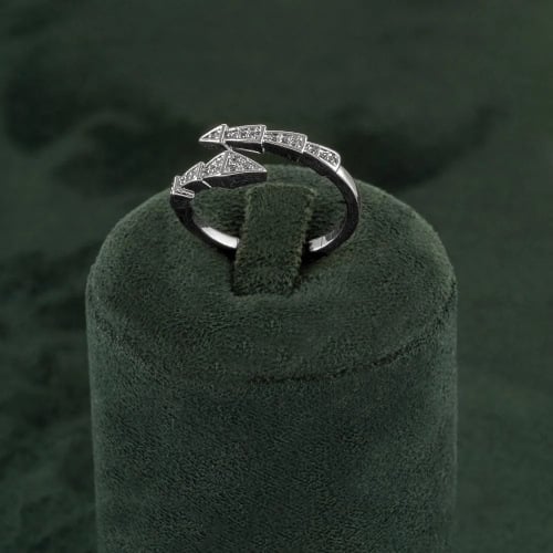 خاتم نسائي تصميم غصن الشجر فضي مزين بالزركون