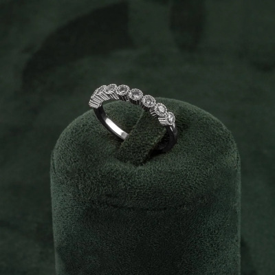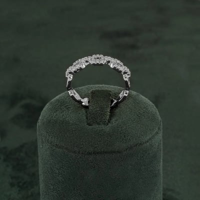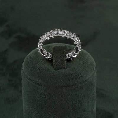 خاتم فضي بتصميم دائري مع أحجار ماسية مرتبة