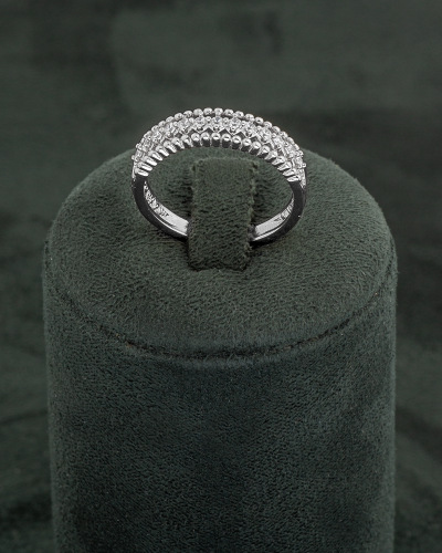يتميز هذا الشكل بصف من الأحجار الكريمة الصغيرة المرصعة بجانب بعضها البعض على طول الحلقة، مما يُضفي على الخاتم بريقًا لامعًا.