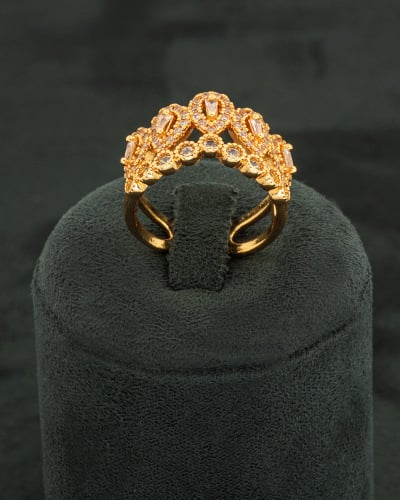 يُشبه هذا التصميم تاجًا مرصعًا بأحجار كريمة، ويُعدّ من أكثر أشكال الخواتم فخامة ورقيًا.