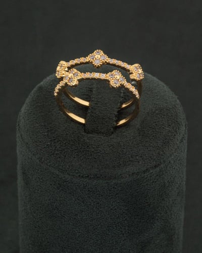 خاتم ثلاثي ذهبي مزين بالزركون ولمعة الألماس