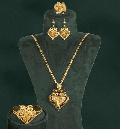 طقم القلب الهندي من خاتون® مطلي ذهب حقيقي عيار 24