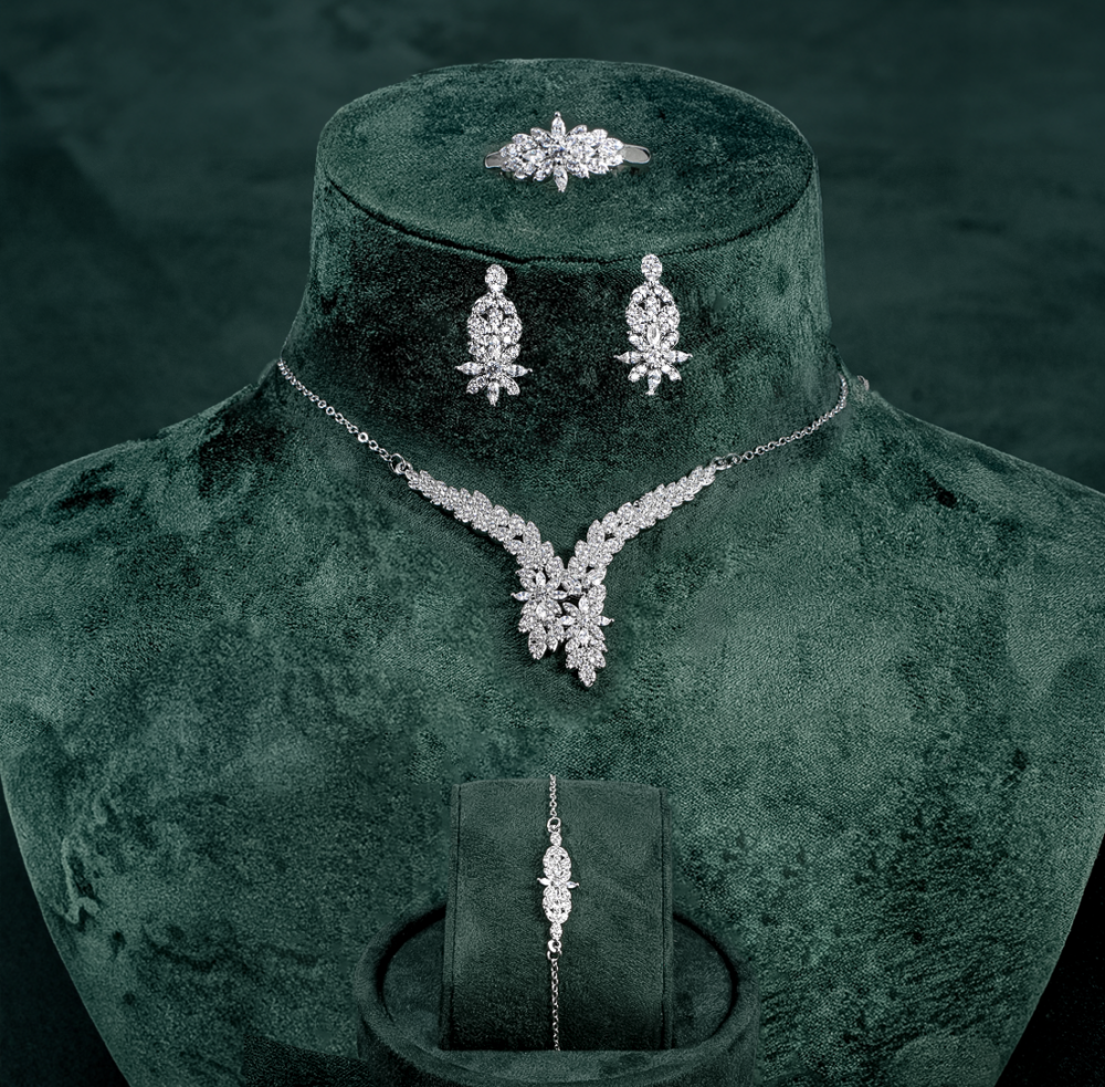 • Consists of 5 pieces (Necklace + ring + earrings + bracelet)