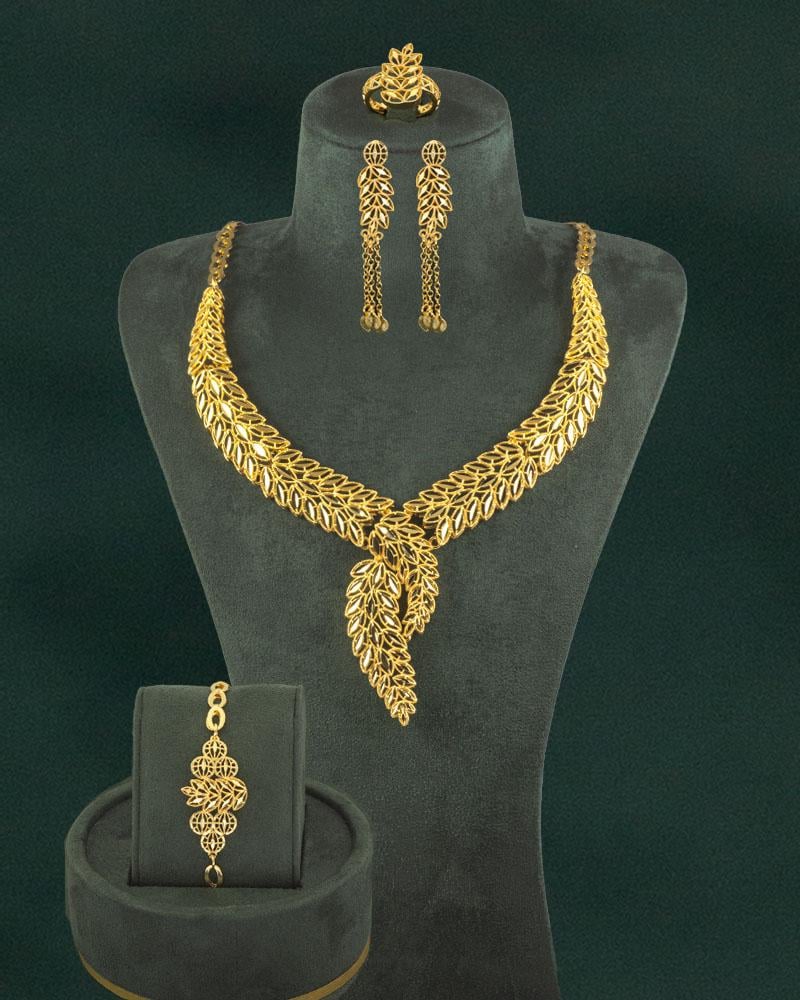 أضيفي لمسة من الفخامة إلى إطلالتك اليومية أو لمناسباتك الخاصة مع طقم إكسسوارات نسائي بتصميم أنيق وبريق يضاهي الذهب الحقيقي.